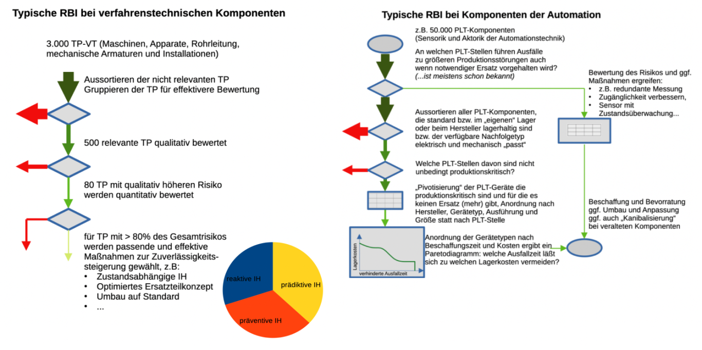 Der qualitativen RBI im VT-Bereich folgt die quantitative RBI. Gemäß der quantitativen Risiken wird die Instandhatltungsstrategie und die Ersateilstrategie gewählt, wo sinnvoll, erfolgt auch der Anstoß zu Anlagenmodifikationen zur Entschärfung von hohen Verfügbarkeitsrisiken